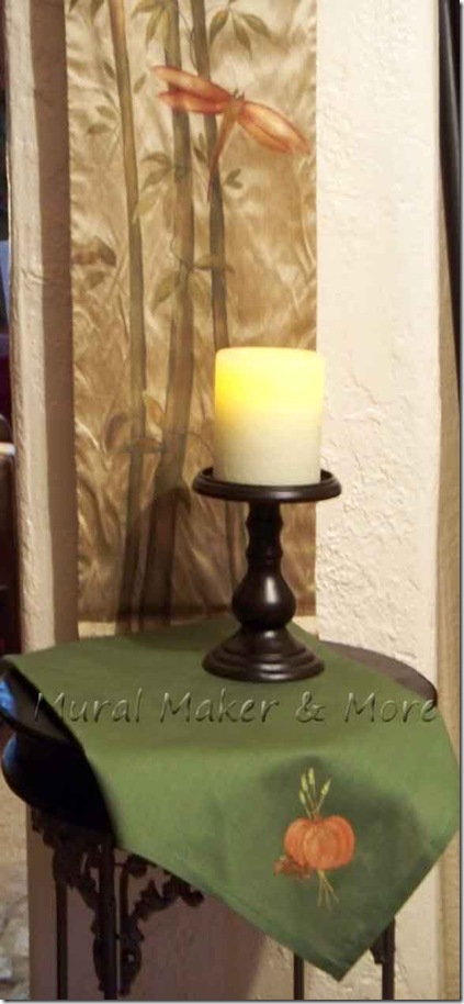 I used Martha Stewart multi surface paint again. How cool is it that the same paint works on both glass and fabric? Now, I did add a little fabric medium to the paint for the napkin because it just flows better.